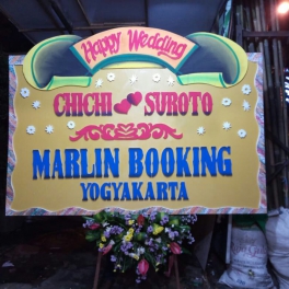Pemesanan order bunga papan pernikahan tidak perlu dilakukan dengan tergesa-gesa, dimana anda bisa order jauh-jauh hari sebelum acara pernikahan. Dominasi warna merah dan cerah tepat diterapkan untuk acara ini. Untuk teks pada pita slempang atas bisa dengan happy wedding atau selamat berbahagia.